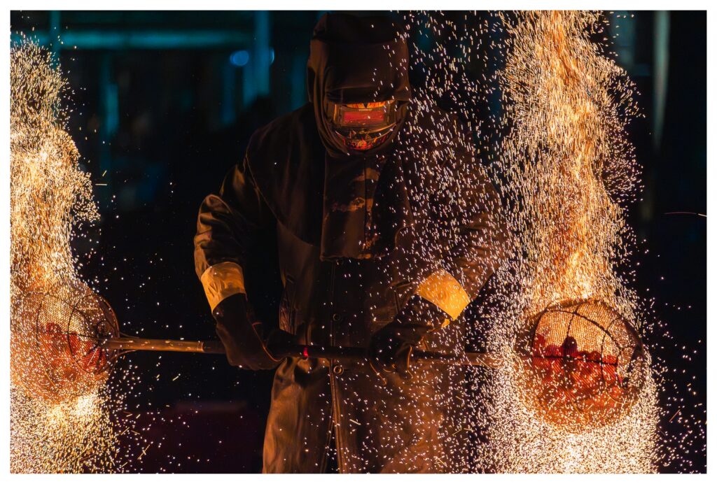 Kurze Verschlusszeiten und wenig Umgebungslicht bedingen außerdem astronomische ISO-Werte; quasi alle Bilder unten sind mit fünfstelligen (!) ISO-Werten entstanden, teils bis über 50.000. Diese hohen ISO-Werte reduzieren den Dynamikumfang des Kamerasensors, den man eigentlich bräuchte, um die enormen Helligkeitsunterschiede (helles Feuer vs. nahezu schwarze Umgebung) in der Postproduktion dem anzugleichen, was wir vor Ort in Persona wahrnehmen. Ach ja: der menschliche Sehapparat hat einen weitaus höheren Dynamikumfang als die besten Kamerasensoren. Daher ist es nahezu unmöglich das Licht im Bild so zu modellieren, als wäre man vor Ort.